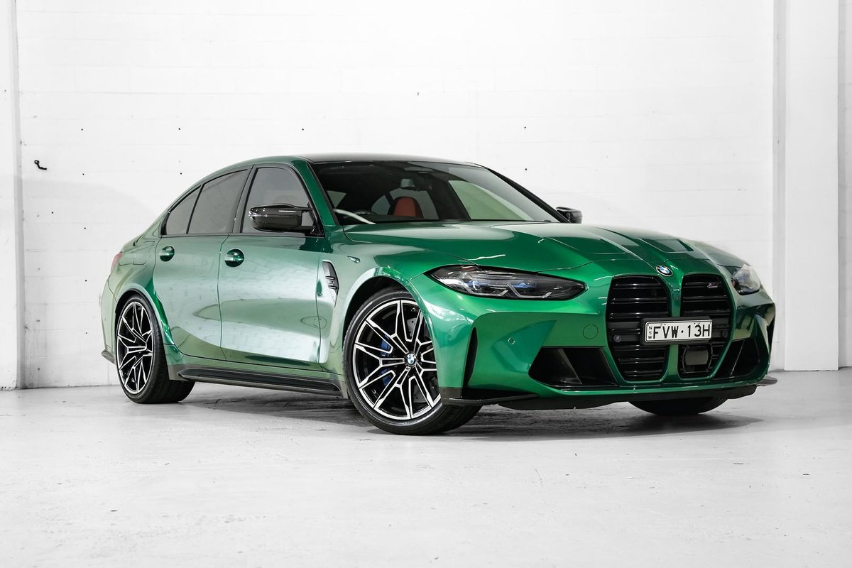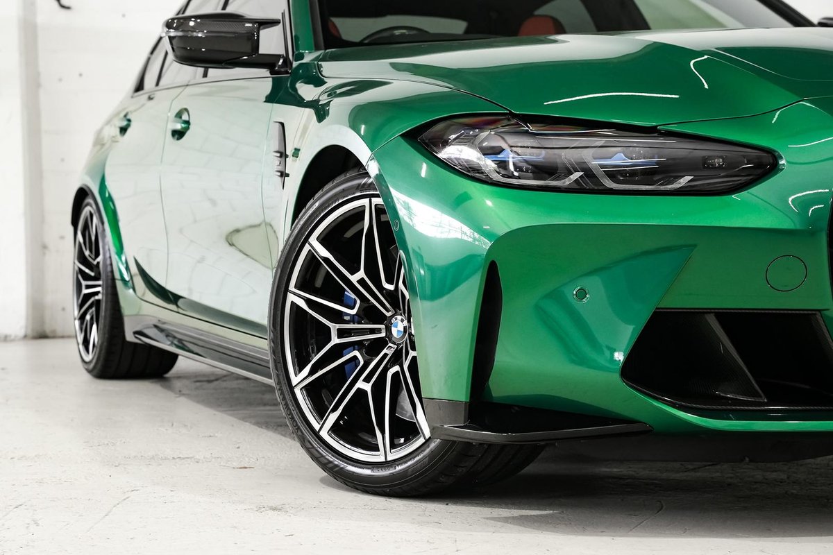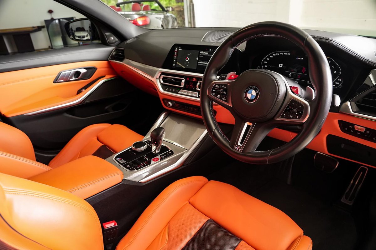 Finished in the iconic and highly desirable Isle of Man Green Metallic, this M3 is further elevated by its Exterior Carbon Package, giving it an aggressive yet refined presence. Inside, the cabin is finished with striking M Sport seats featuring ventilation, delivering both comfort and performance focus.